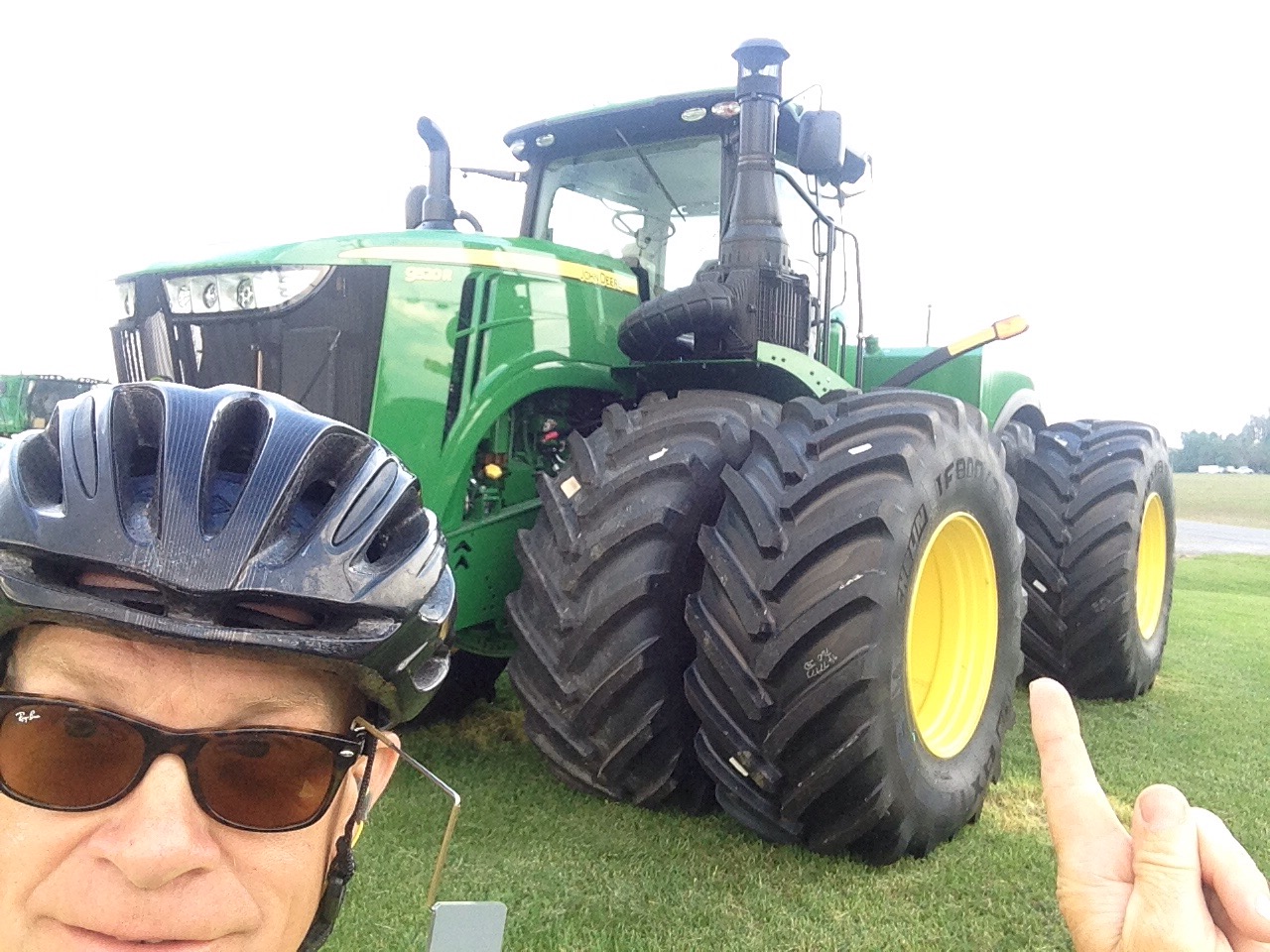 I wasn’t looking forward to riding in the heat again today. But given the choice of riding in the heat Vrs riding in the cold & rain with double layers of gloves, pants & shopping bags taped around my feet & hands, I choose the heat. I left out early @ 6:30 with 70 degree temps & a light tailwind. I passed into Ohio @ 7:00. Not wanting to waste any of these great riding conditions I rode straight through with 2 5 minute breaks all the way to the 65 mile mark! The road conditions were good. The farmers were out early too, working their fields. Riding in these conditions is priceless. The other neat thing is looking @ all the tractor dealers along the way with huge stocks of huge equipment. It looks like crop farming is alive & well in the heartland. I took a lunch break in Findlay Ohio, rested a bit & set out on the last 30 mile stretch into the town of Tiffin , 108 miles in. The heat started right on schedule 11.00, but with the help of a tailwind I ended my day early @ 3:00.