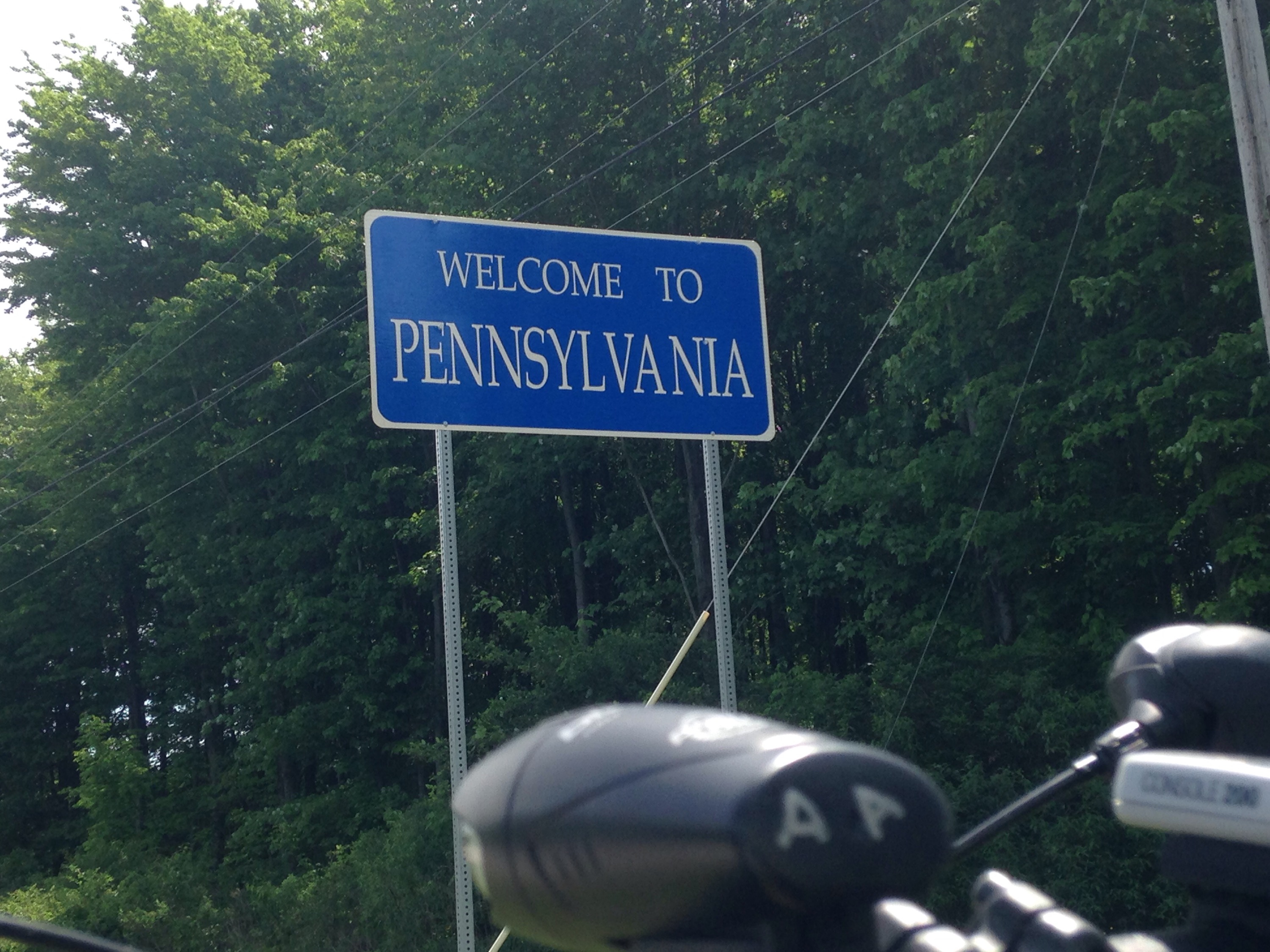 I started off on Rt 84 out of the suburbs of Cleveland. This was a genuine listed  “bicycle route”. This route takes you through beautiful neighborhoods & into the countryside where you start into a series of mini climbs that grow into more substantial climbs after about 50 miles. These hills are a good warmup for the mountains of Pa that lay ahead. Ohio was a great state to bike in, but as a going away present, it gave me my second flat tire of the trip! I had hit a hidden crack in the shoulders pavement that slammed the front tire pinching the tube. I changed out the tube in semi record time & was back on the road. That being the best Ohio had to throw @ me, by my measure I would say I did OK.