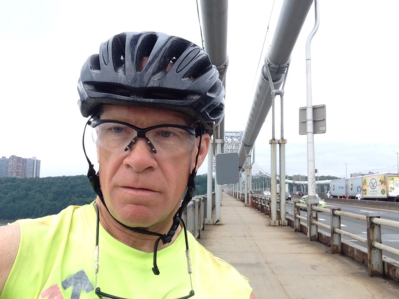 Like a lot of nights on this trip, I did not sleep exceptional well. Maybe it was the steady stream of arrivals flying past my hotel to land on runway 19 @ Teterboro airport just a mile away, or trying to adjust to a foreign mattress. But more likely was the anticipation of getting started on my final leg of this trip. 17 miles left, 7 to the GW bridge & 10 into the park. I passed on breakfast & started off making my way through the many street changes necessary to get to Fort Lee & the bridge. But as hard as it may be to believe, I had a few more tough climbs about 3 miles from the bridge that were equal to any of the climbs on theprevious day. I guess it was NJs little going away present. The road does not care if you are 1 mile or 1000 miles from the finish, it plays the same regardless.