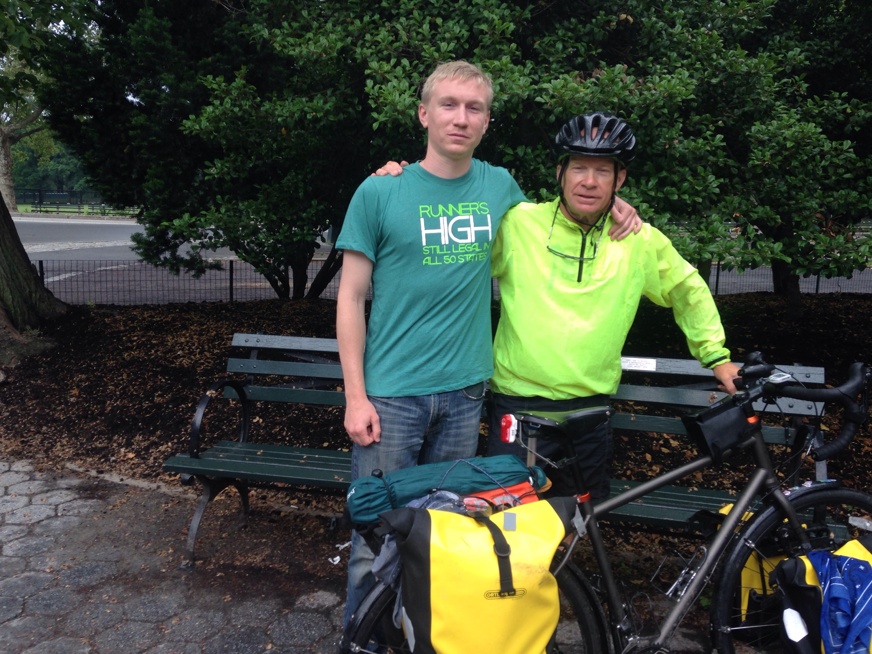 I picked no special route once I got to the city. I simply worked my way south & east until I hit the north border of Central Park. I had phoned Glenda once I reached the city to give Garth & her time to get to the park. I ended up taking a more “scenic “route than planned and ended up overshooting the street into the park. I corrected that mistake & worked my way into the park where Glenda & Garth were waiting (Garth was sleeping & Glenda was busy on her phone) – so instead of a large & loud reception it was kinda quiet & low key, the way I like it.