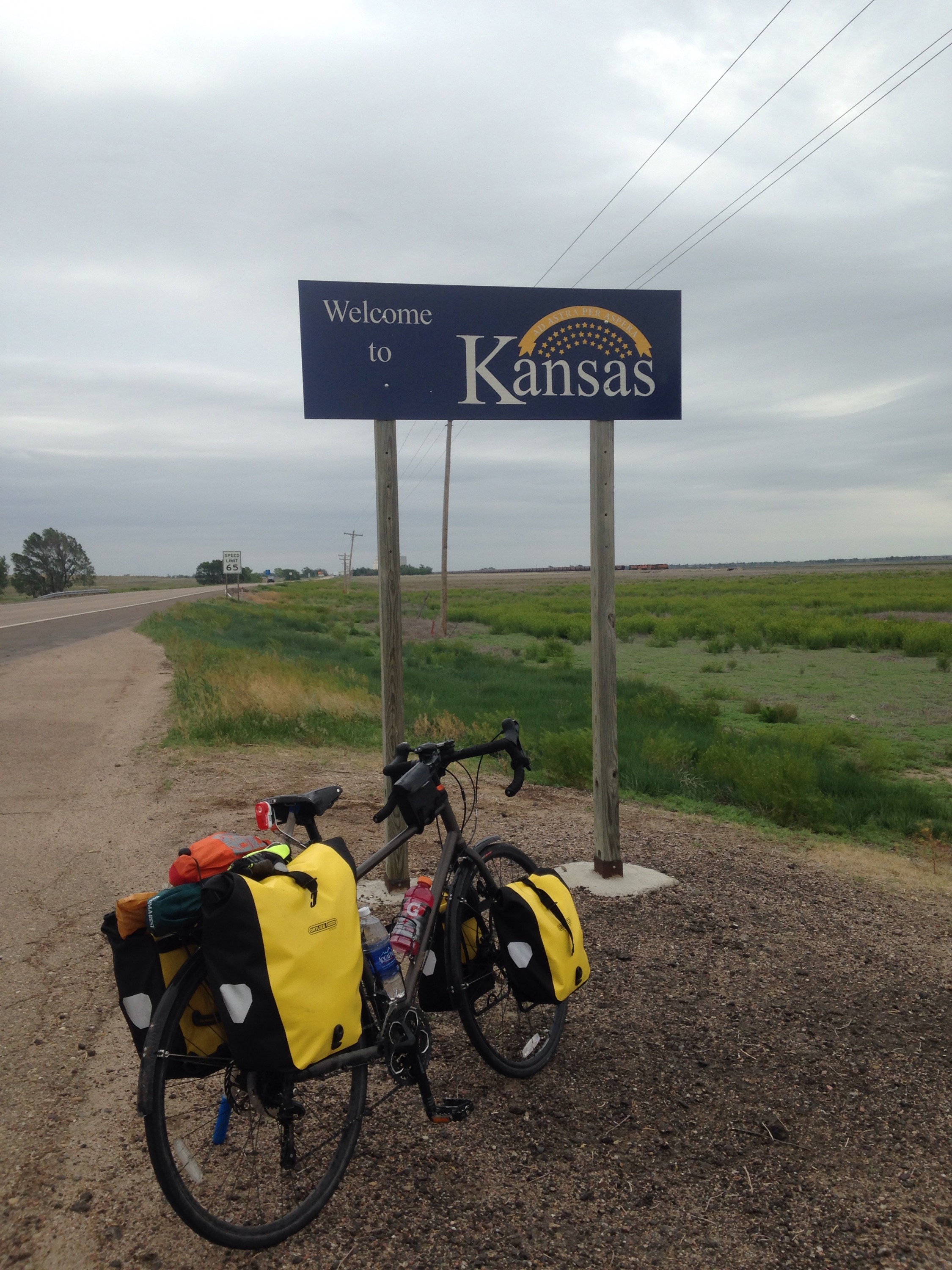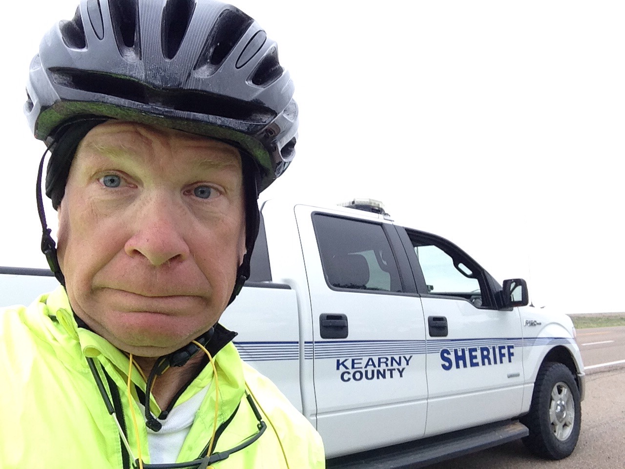 I was out of bed @ 4:00 am as I couldn’t sleep much with my cold & stuffed up head. So I planned on being out the door @ sun up but @ sun up it was wind blown rain & 45 degrees! I went back to bed. Off then @ 8:25 I rode 24 miles to the next little town, stopped for breakfast & to thaw out. Probably the highest headwinds yet made the 70 mile ride into Great Bend an all day event. Hitting 9 mph was a big number when most of the time was spent grinding down the flat farm field lined road @ 7 mph. I made it into Great Bend exhausted. There is no let up in the winds for the next 4 days. So my goal is to just make it out of Kansas by Sat or early Sunday?